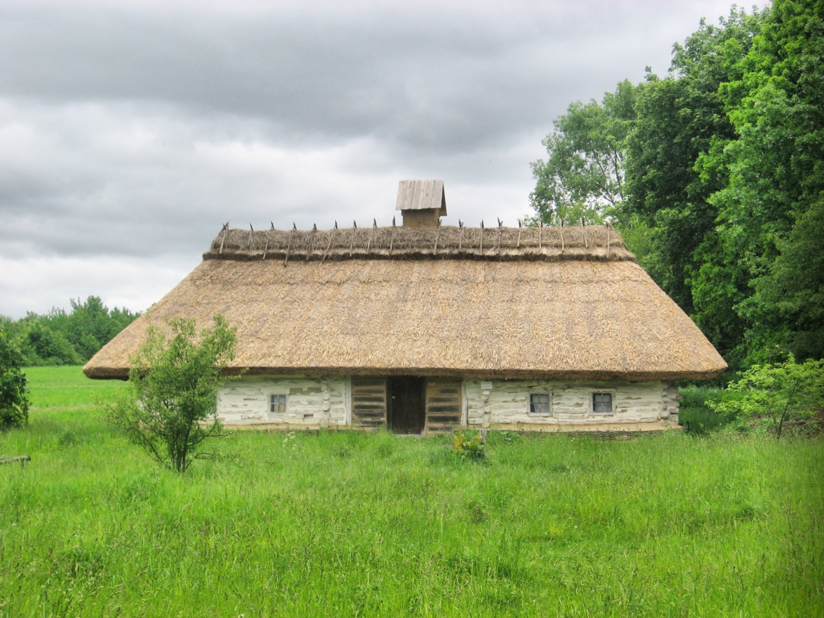 Колиба - восьмигранна будівля – один із архаїчних типів житла. Стіни рублені зі смерекових колод, сім граней утворюють стіни, а восьма – двері, щілини між вінцями утеплено мохом.